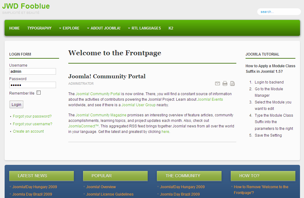 JWD Fooblue: Un template clean et professionnel pour la communauté Joomla!