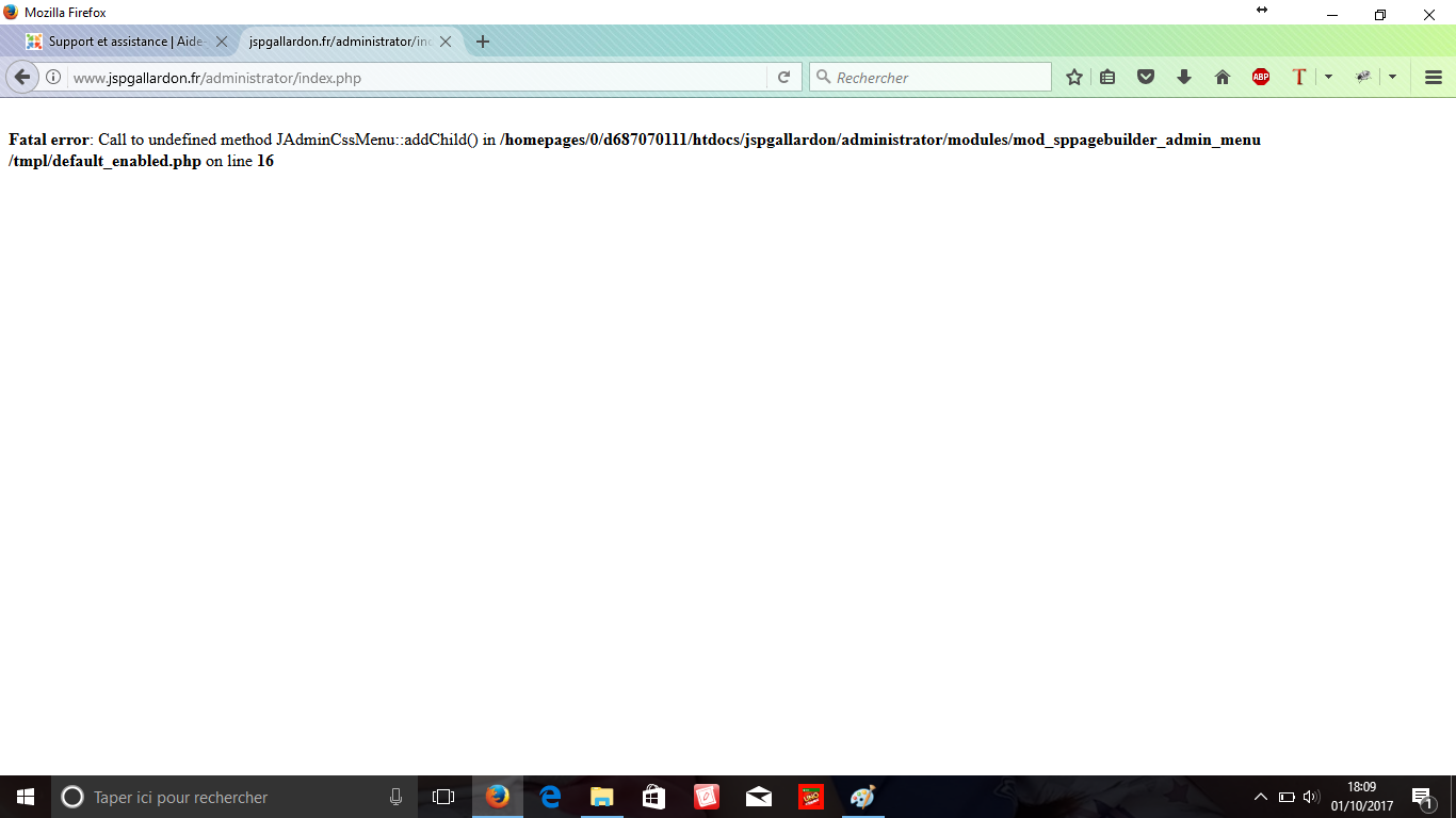 Fatal error: Call to undefined method JAdminCssMenu::addChild() in /homepages/0/d687070111/htdocs/jspgallardon/administrator/modules/mod_sppagebuilder_admin_menu/tmpl/default_enabled.php on line 16