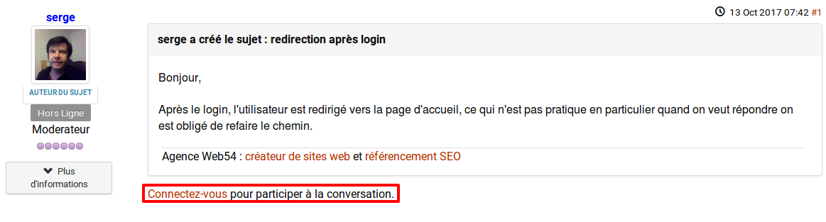 Après le login, l'utilisateur est redirigé vers la page d'accueil, ce qui n'est pas pratique en particulier quand on veut répondre on est obligé de refaire le chemin.