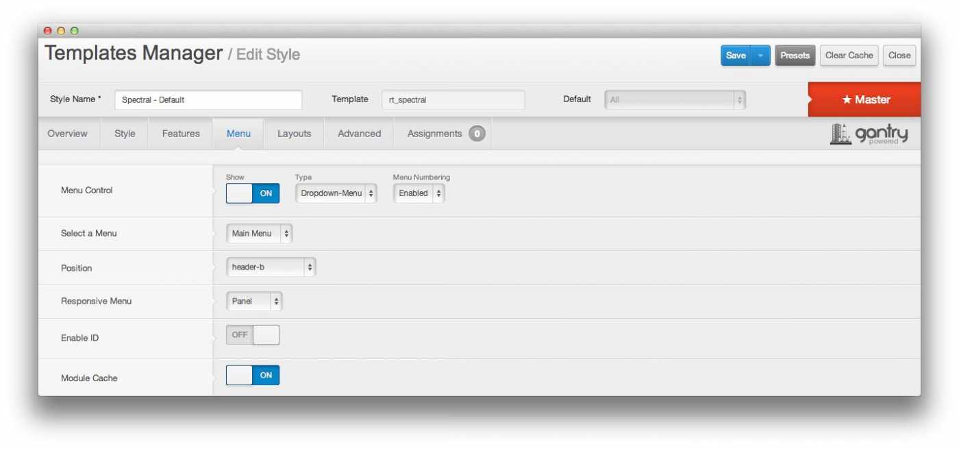 Regarde dans la gestion de ton template si ne se trouve pas un paramètre pour choisir quel menu doit s'afficher.