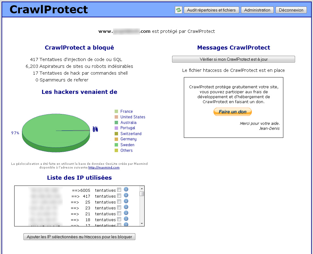 3. Pour protéger votre site, je vous conseille d'installer crawl Protect qui est un script 100% gratuit !!