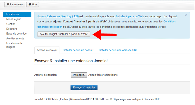 "ajouter l'onglet "installer a partir du web""