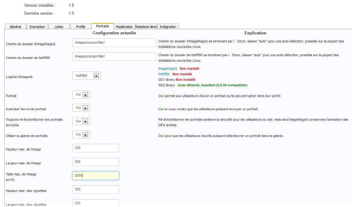 j'ai mis rapport d'erreurs sur maximum et j'ai aucune erreur sauf le fait que la fenêtre indiquant "portrait du profil : le fichier dépasse la taille maximum de 2000 Ko" apparait après chaque tentative d'insertion d'un portrait même de 10ko