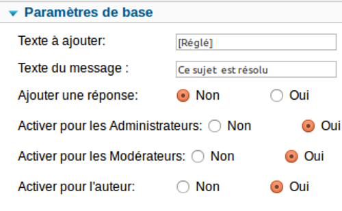 Très chouette plugin et qui répond à un besoin réel de permettre à un utilisateur / modérateur de marquer une discussion comme réglée. Ceci afin de simplifier la lecture du forum et la recherche, par d'autres, de réponses à un problème similaire.