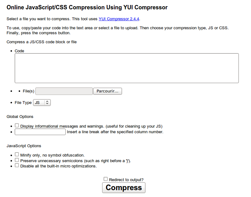 L'utilisation de CssJsCompress n'a malheureusement pas été une réussite!
