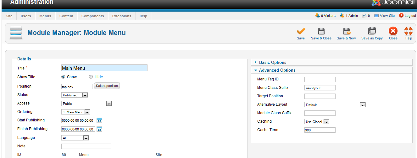 Que je mette un espace devant ou pas cela ne change rien. Cela est la configuration du module pour le menu principal :