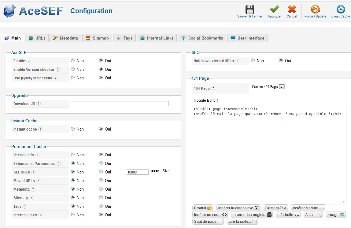 Je n'avais pas cet article 404 avant d'installer AceSEF et comme il apparait dans le "Main"...