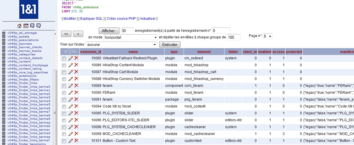 Il faudrait peut-être que j'aille dépublié le module cachecleaner mais touche à phpmyadmin ne m'enchante guère et je ne trouve pas comment le dépublier. Voici ou j'arrive :