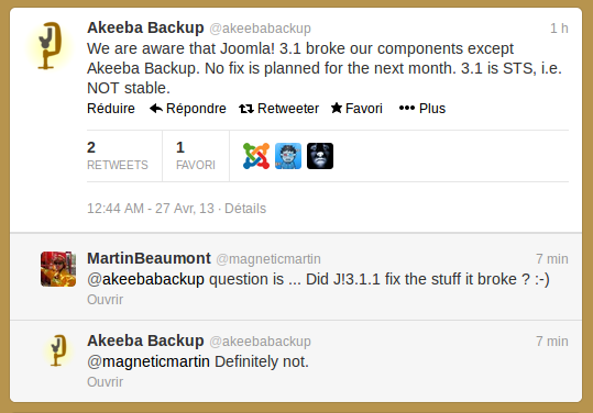 Réponse de tramber91 sur le sujet Joomla! 3.1 disponible