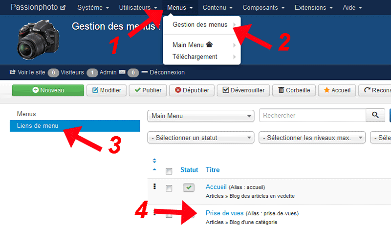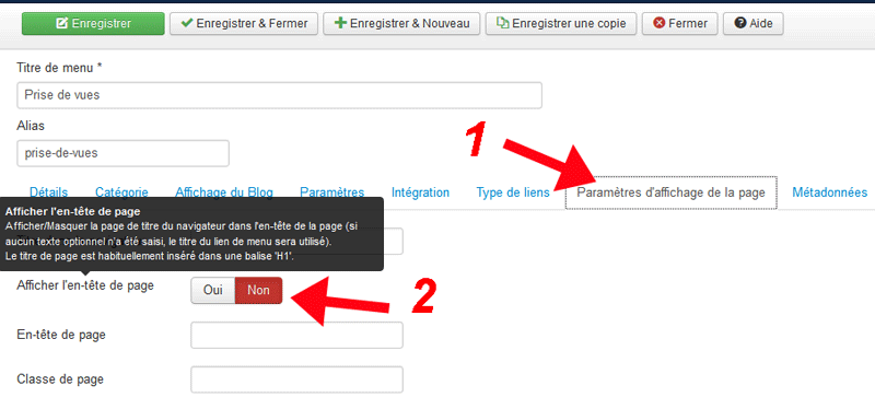 titre des items du menu qui s'affiche en h1 dans la page de l'article appelée joomla 3