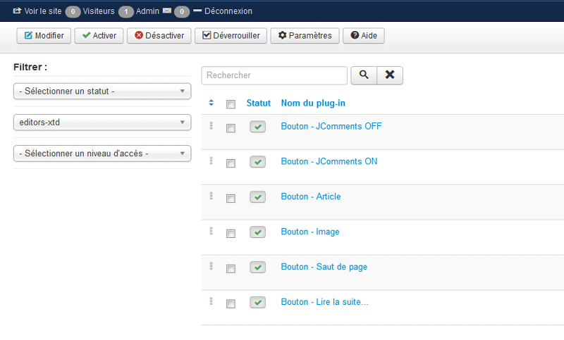 Quand je désactive les plug-ins de type editors-xtd il disparaissent côté front-end mais cette fois-ci ils disparaissent aussi côté back-end.