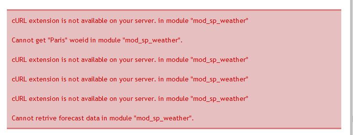 Je viens d'essayer d'installer par le gestionnaire d'extension de Joomla 2.5 votre fichier mais j'ai un souci. Il m'affiche à la position désignée seulement le titre "SP Weather" et sur une autre position le message du fichier joint.