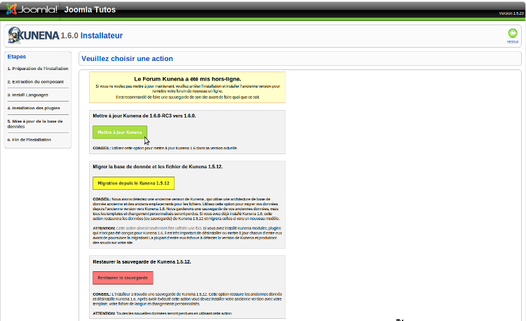 Nous pouvons maintenant commencer la mise à niveau vers Kunena 1.6.0 (Version stable)